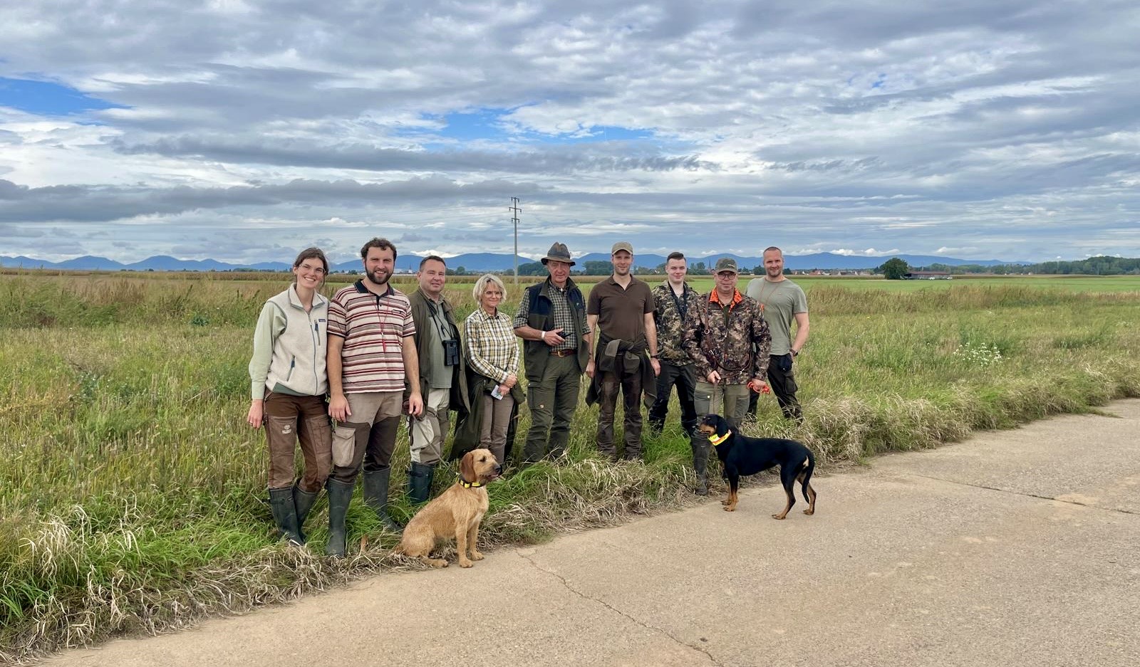 Der Rest der Gruppe beobachtete das Geschehen unter der Moderation von Joachim Trogemann und Armin Lobscheid. Aufgrund der nassen Witterung und der aufgeweichten Wiesen ließen sich selbst mit Hilfe von Wärmebildtechnik leider keine Hasen aufspüren.