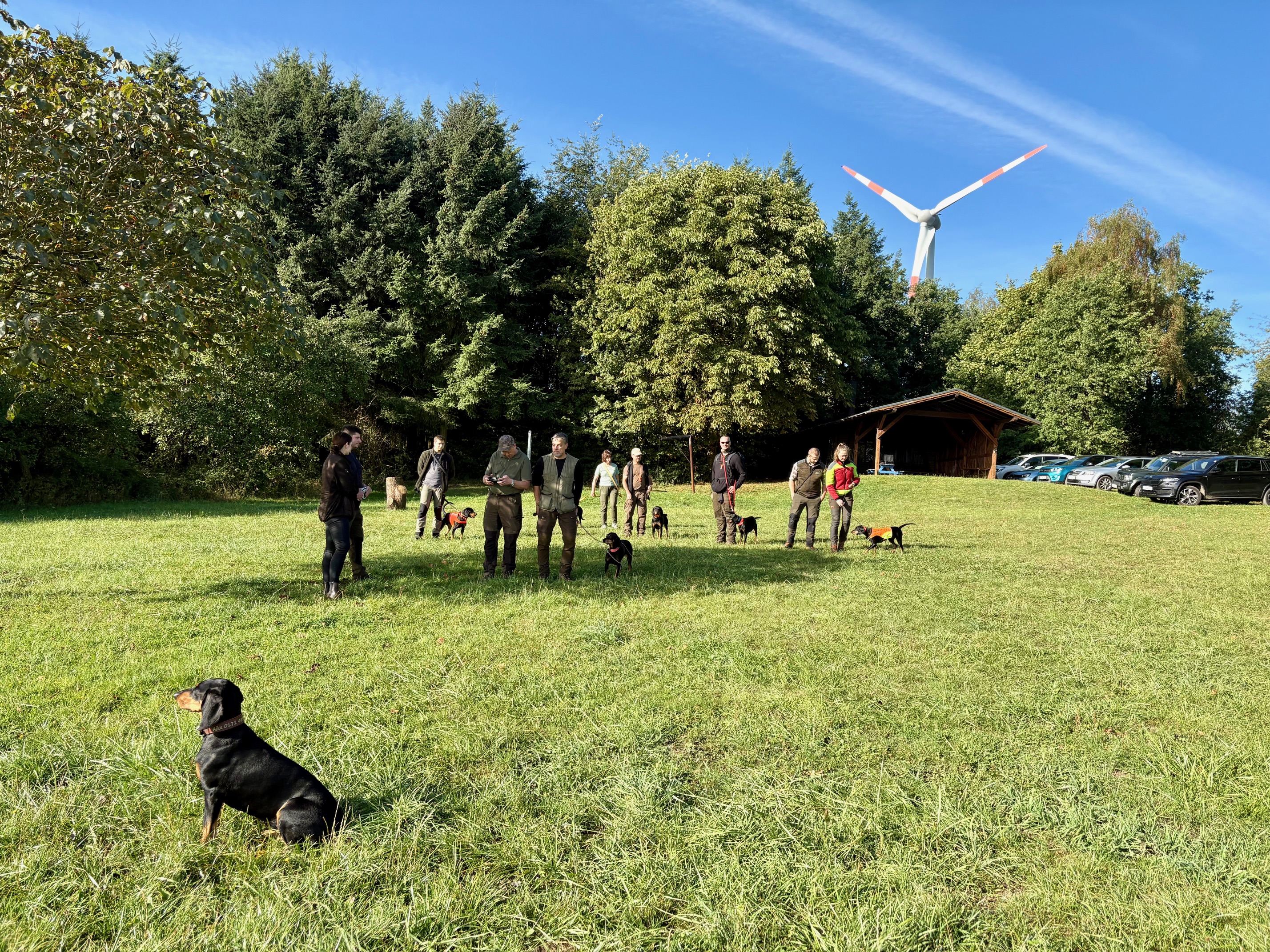 Bei meinem Eintreffen am Schwarzwildgatter Hunsrück hatte der Tag bereits, mit regen Treiben rund um die Anmeldung, seinen Anfang gefunden. Für den Übungstag am 26.10 erschienen viele interessierte Hundeführer in Begleitung ihrer kleinen und großen Vierbeiner. Kaum auf dem Parkplatz angekommen, konnte ich viele mir bekannte Gesichter entdecken. So fand man sich schnell in heiterem Austausch mit den zweibeinigen Freunden und ersten Streicheleinheiten mit ihren vierbeinigen Gefährten wieder. In den vergangenen Monaten konnte ich viele tolle Menschen auf unseren Vereinsveranstaltungen kennenlernen und freue mich zu sehen, wie sich diese Bekanntschaften bei jedem Treffen mehr und mehr zu Freundschaften entwickeln.